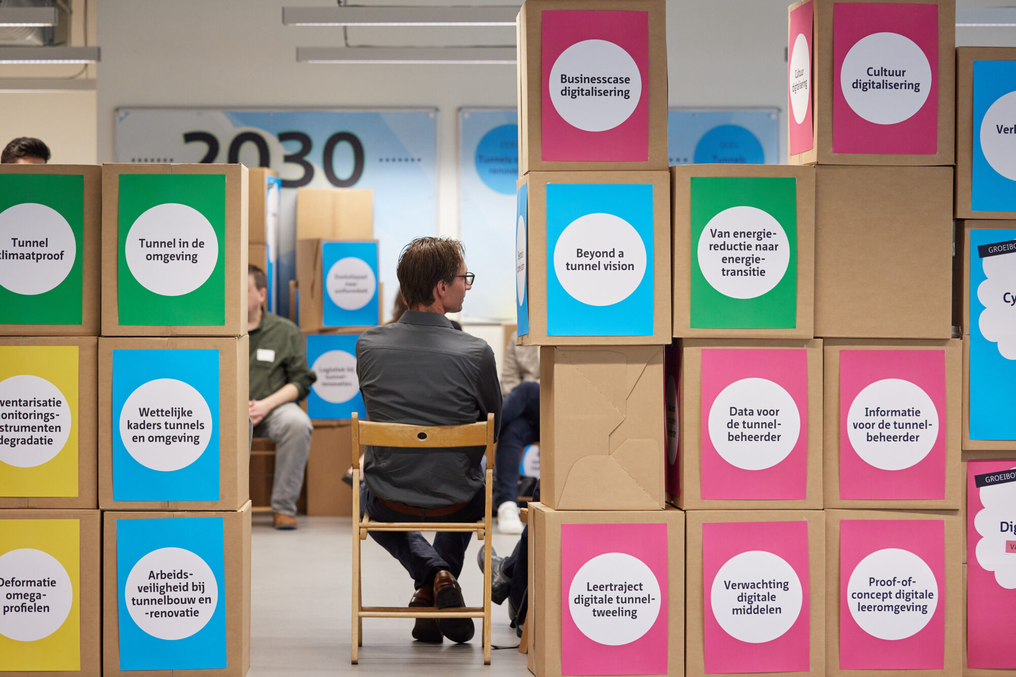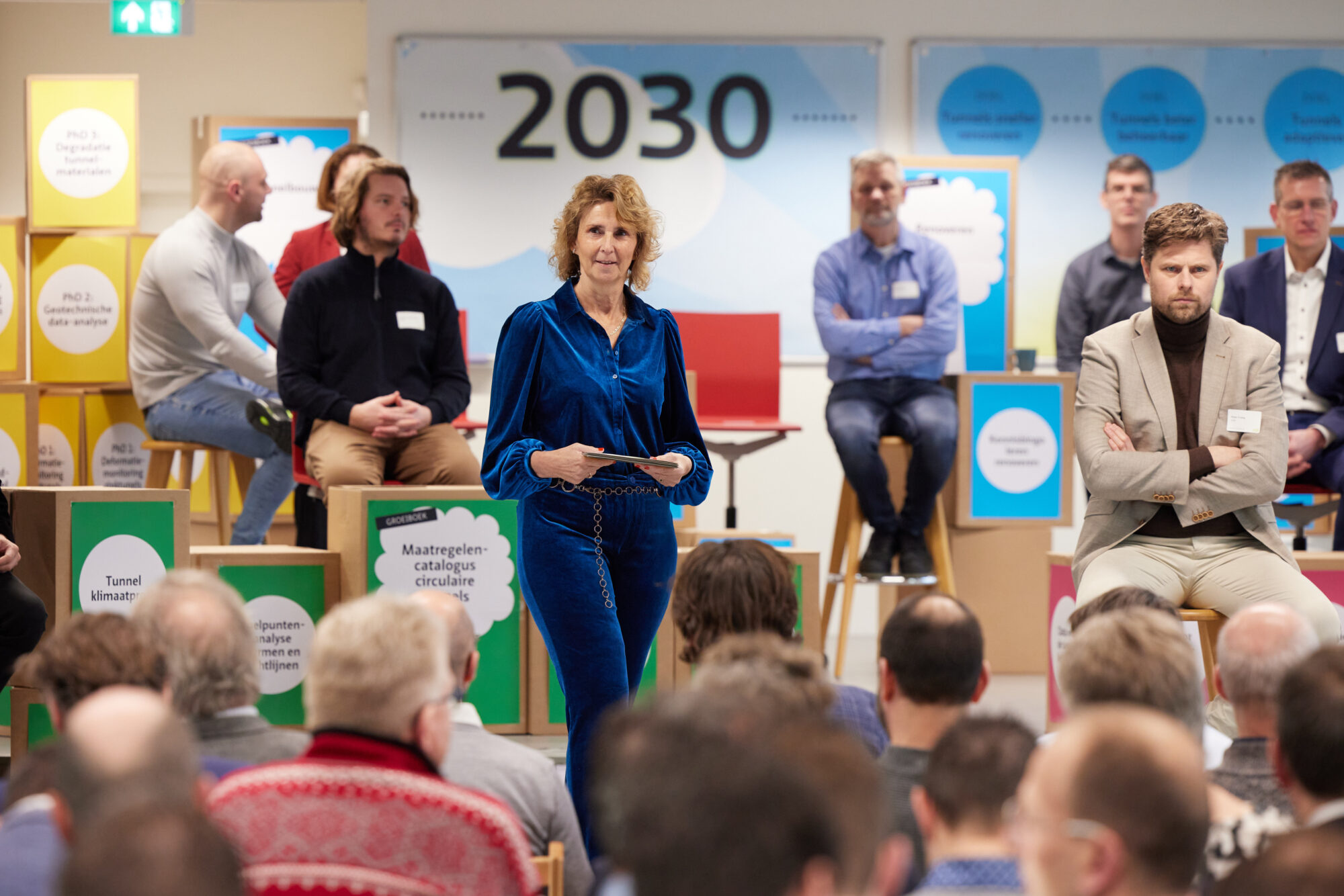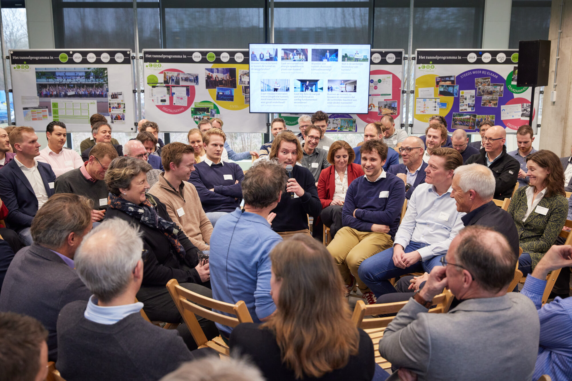 Na de subsessies volgde in de plenaire zaal een zogeheten fishbowlsessie. Onder leiding van een facilitator zijn op een leuke, interactieve manier, ideeën voor het Tunnelprogramma 2025-2030 geopperd, bijgeschaafd en gevormd. Aan het eind van deze sessie had het COB-tunnelteam aandachtspunten waarop ze haar focus kan leggen in het bepalen van het Tunnelprogramma 2025-2030.